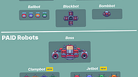 A nice addition to the lineup: 4 new robots (with color variation + animation) - clampbot - dreadbot - grabbot - jetbot If you want some cute robots for your platformer or run & gun project then you s...